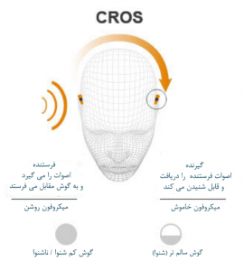 سمعک کراس (Cros) مناسب برای کم شنوایی یکطرفه: هنگامی که یک گوش دارای شنوایی طبیعی (یا فقط افت ناچیز در فرکانس های بالا دارد)و گوش